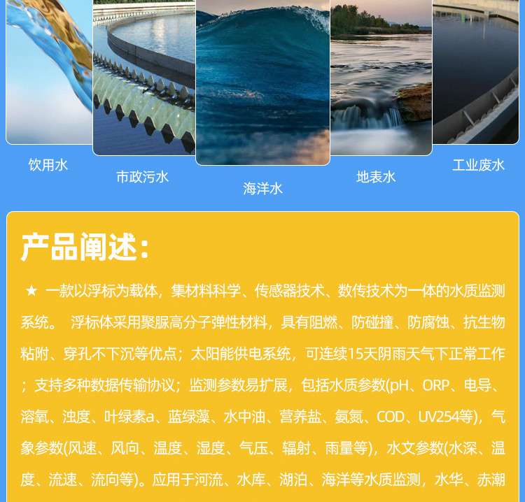 MDS-FBHY2301海洋浮标水质监测站,是一款以浮标为载体,集材料科学、传感器技术、数传技术为一体的水质监测系统。
