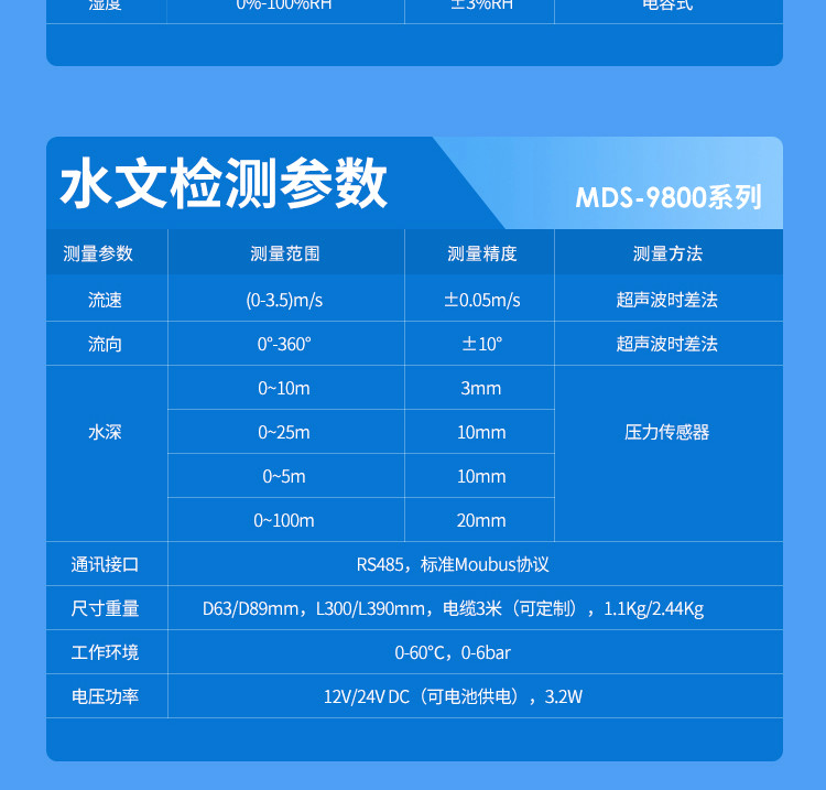 流速 | 旋桨式 | (0-3.5)m/s | ±0.05m/s |