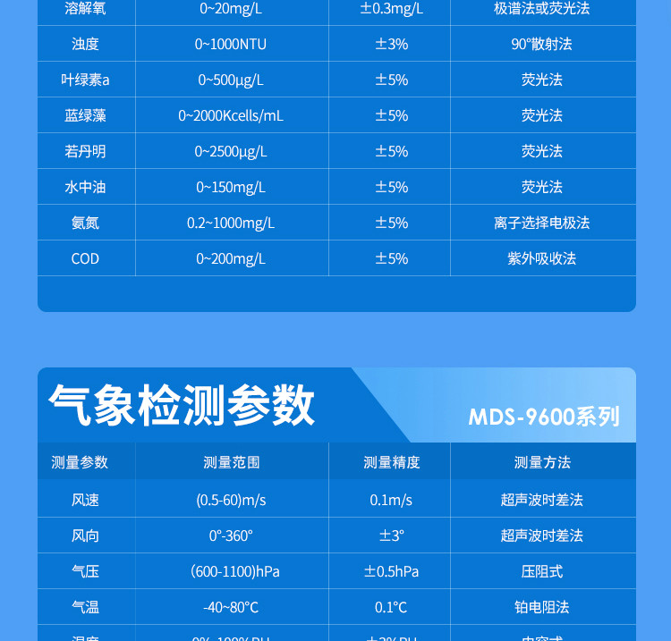 蓝绿藻 | 荧光法 | (0-2000)kcells/mL | ±5% |
