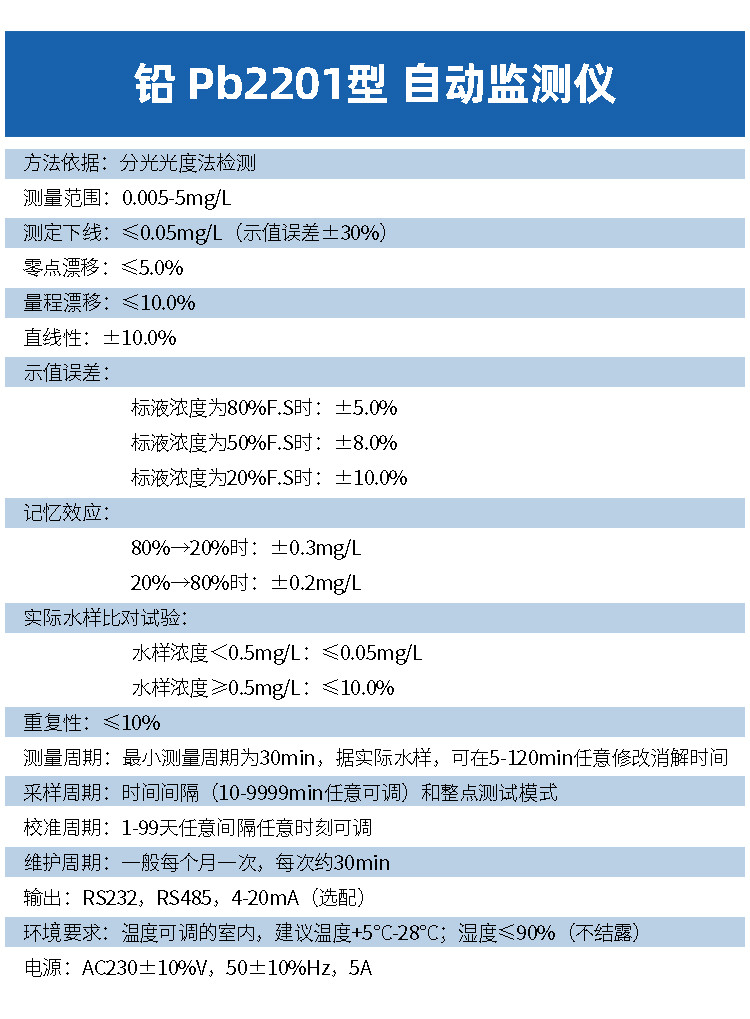 在线总铅检测仪是一种用于实时监测流体或水体中总铅含量的仪器。在线总铅检测仪由计算机控制自动完成水样的现场采集、加药、恒温消解、光电比色,直至结果显示全过程。多用于地表水、饮用水、海水、工业废水和工业生产过程中的总铅自动连续分析检测。